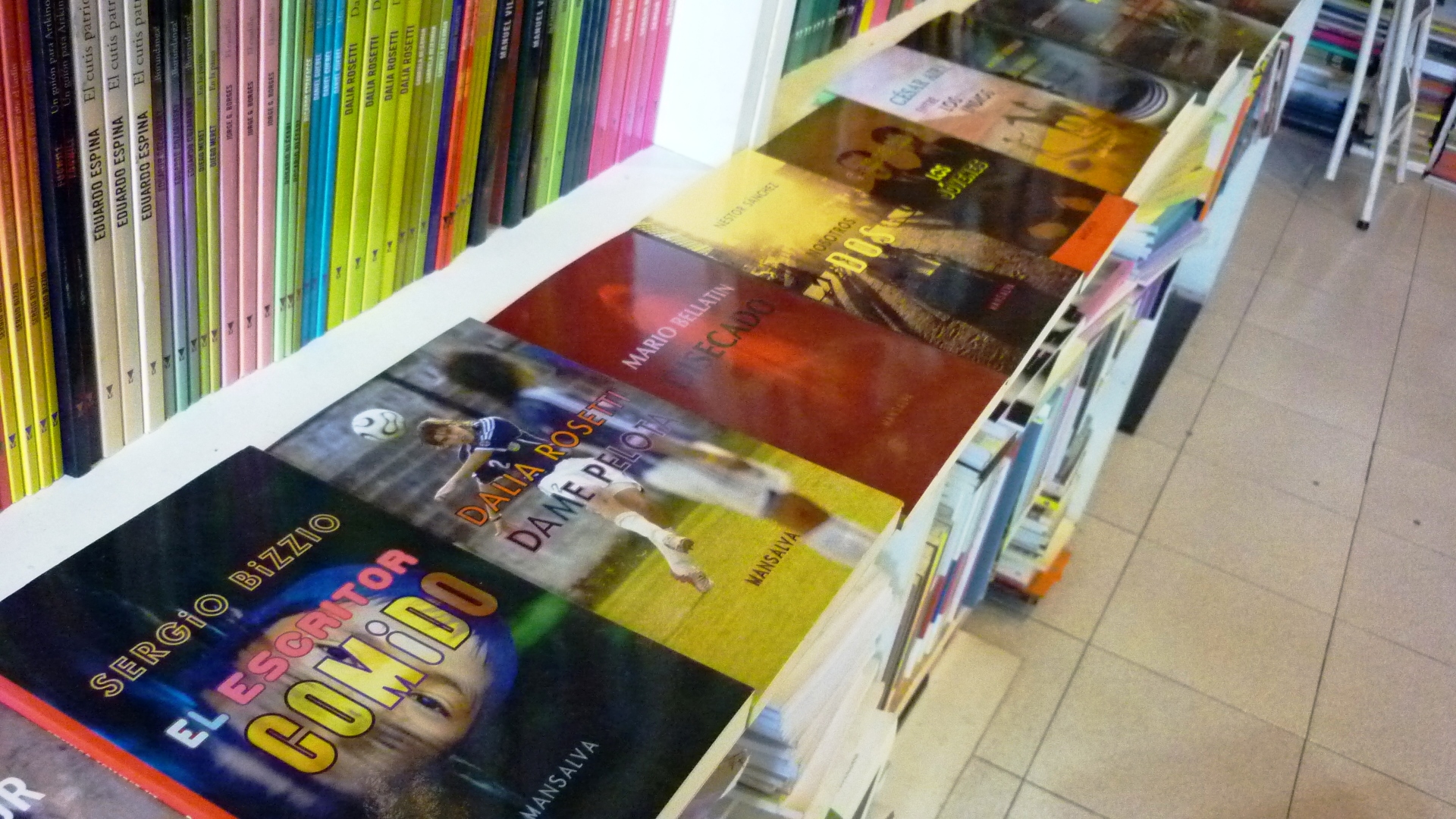 Si bien los títulos se agrupan en colecciones bien delineadas -“Poesía y ficción Latinoamericana”, “Colección Popular de Arte Argentino”- hay límites que se tocan. Es interesante recorrer los estantes de esta especie de búnker literario porque podemos seguir diferentes recorridos. Mansalva presenta tramas más que temáticas.