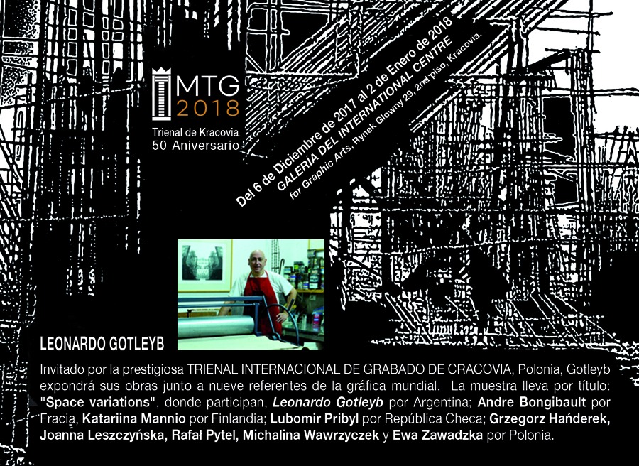 Su obra ha sido seleccionada para participar en la Trienal Internacional de Grabado de Kracovia, Polonia, 2017. En la actualidad Leonardo Gotleyb es el artista argentino exponente de las artes gráficas a nivel internacional.