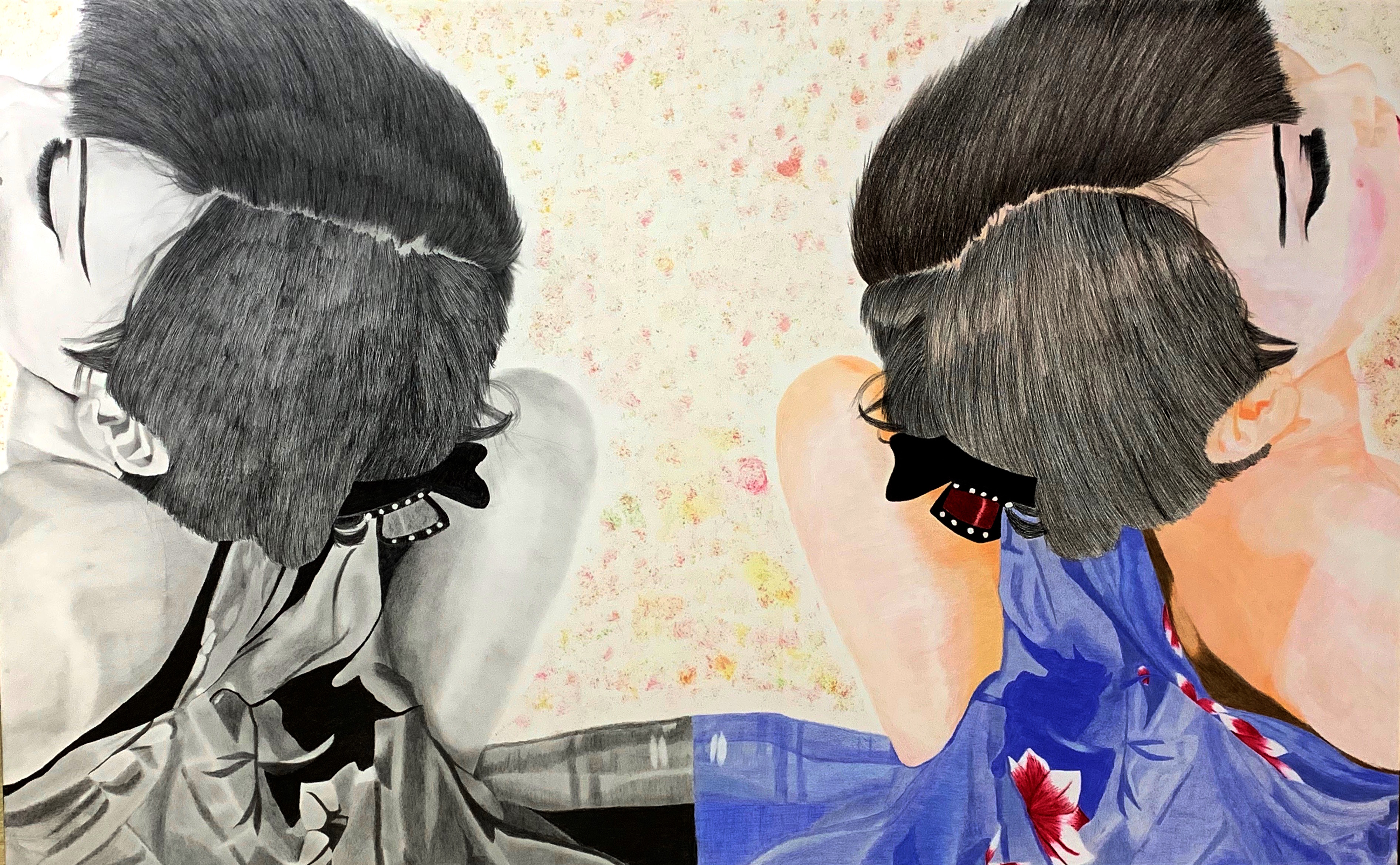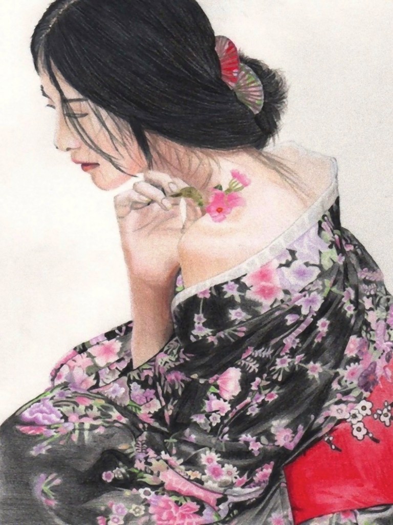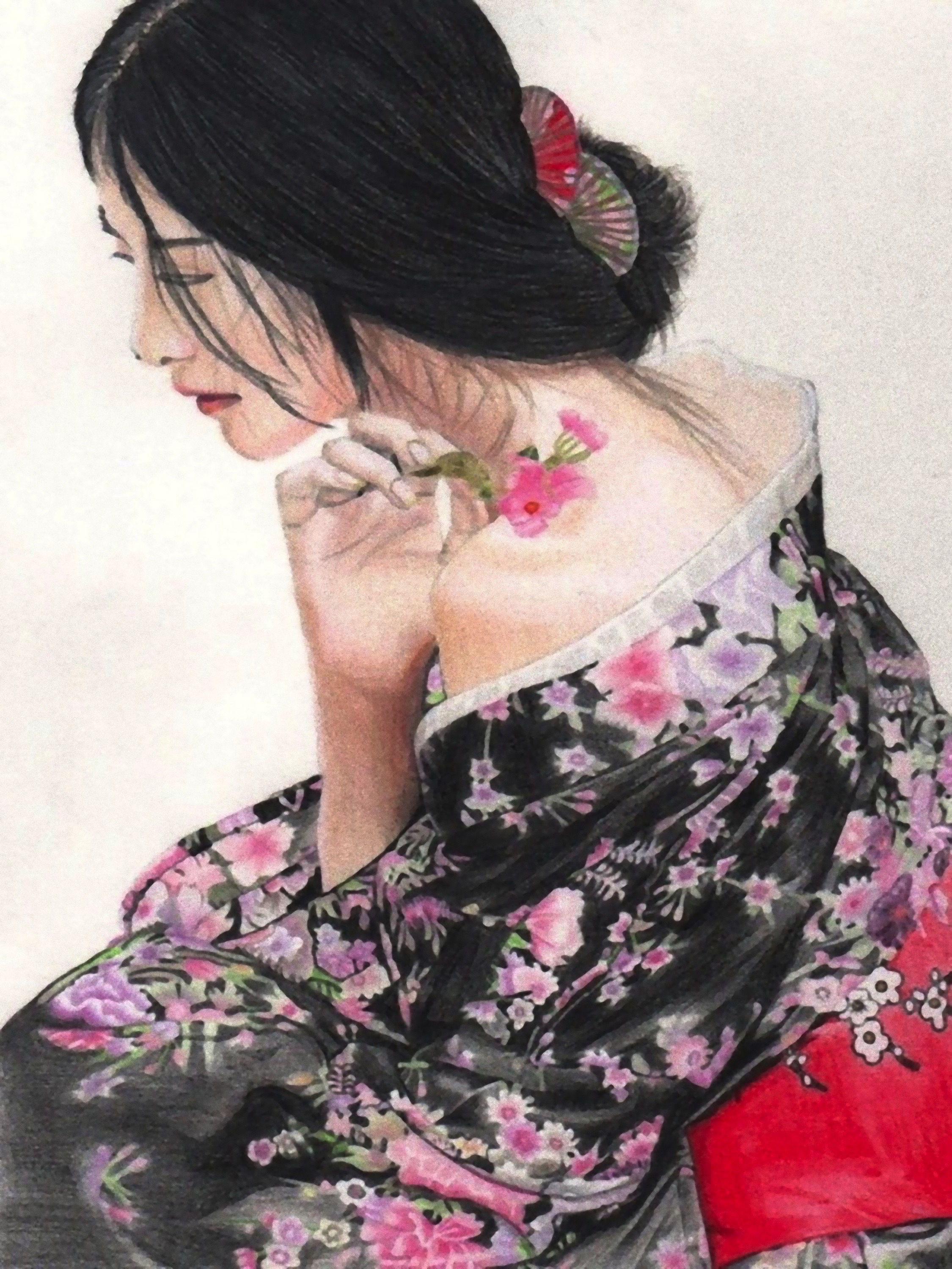 The eternal subject of the geisha is developed in his artwork