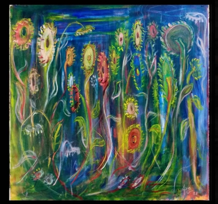 Como si estuviéramos soñando, las figuras se traslucen, doblan y superponen.